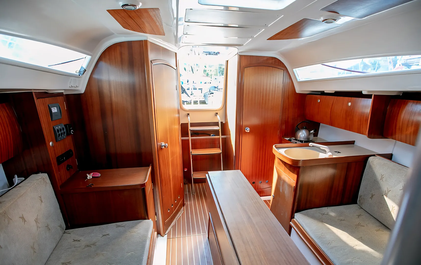 Antila 27 Dziunia to jednostka, która łączy nowoczesny design z niezawodnością na wodzie. Wybierając ten jacht w Giżycku, zyskujesz pewność startu z prestiżowej Lowen Mariny oraz opiekę techniczną bezpośrednio od naszych specjalistów. To idealny wybór na komfortowy czarter jachtu na Mazurach dla żeglarzy, którzy nie uznają kompromisów w kwestii jakości i bezpieczeństwa.